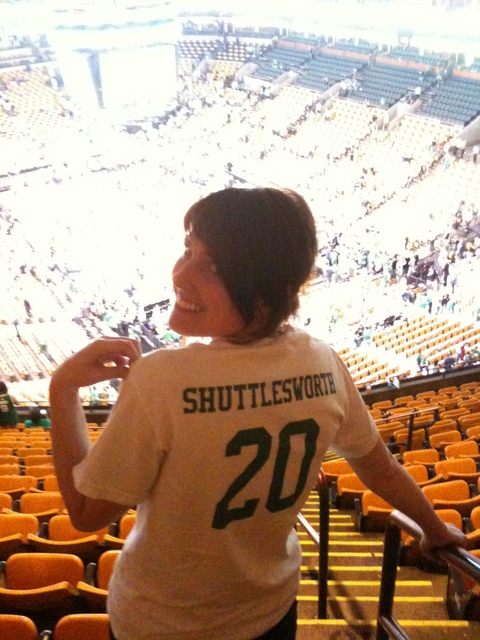 On a fun note: Jeannette’s Grandmother loves Nate Robinson; she always wants him to play because he brings such “spitfire” to the game. She gets very annoyed with Doc when he doesn’t bring him in when she thinks he should. When Nate was playing so long tonight, and so well, and we were all jumping and and waving our towels and yelling and screaming – Jeannette turned to her random neighbor seatmate at the Garden and screamed (to be heard above the din): MY GRANDMA LOVES THAT GUY!!!